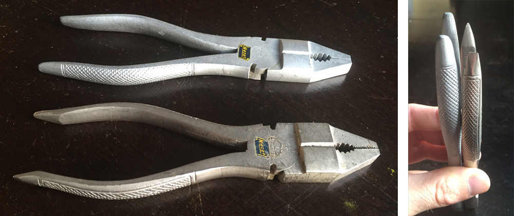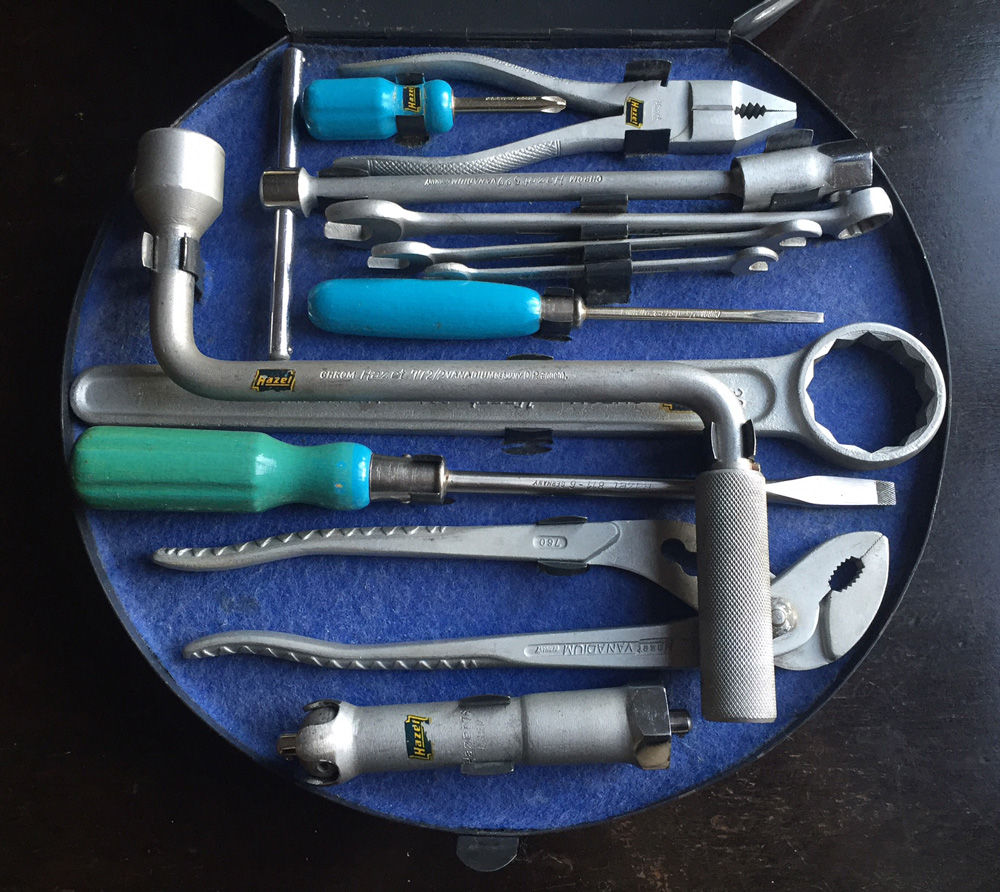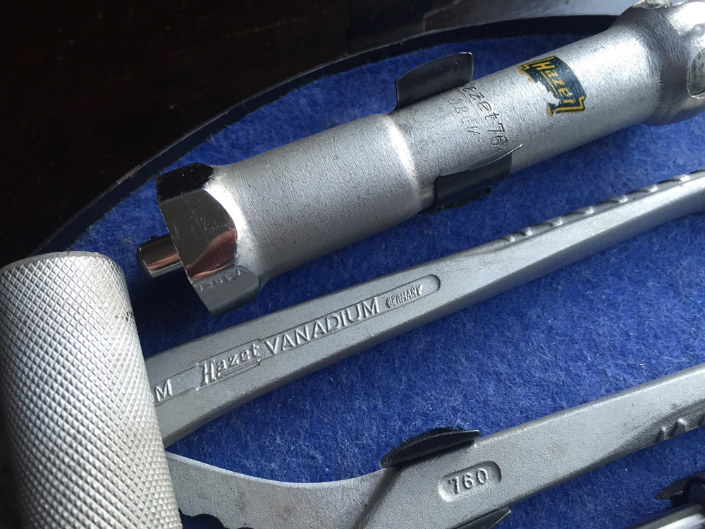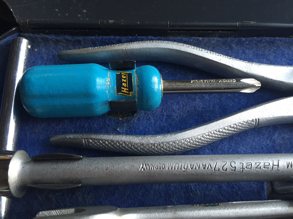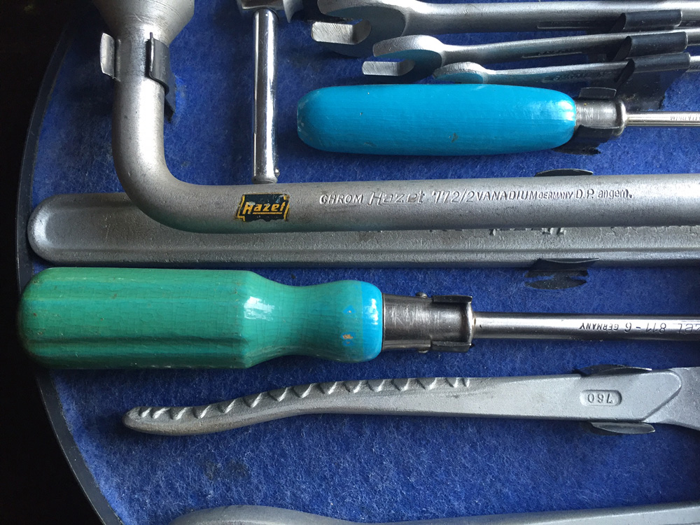The combination plier looks similar to the one found in early 16" boxes, Here is a comparison, the new one (top) has rounded handle tips, The 772/2 Wheel lug tool also now says "Germany" on it. Also the 764 is now polished, in the hexagon end.